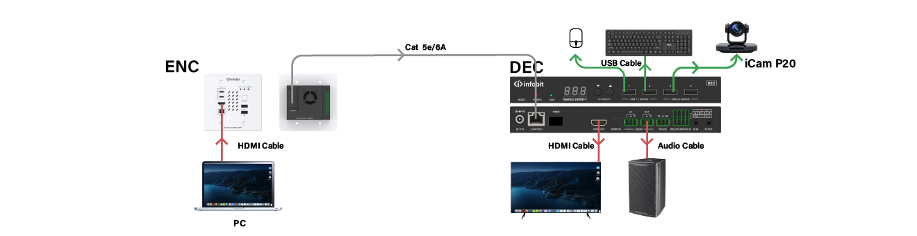 Transmit video, analog audio, RS-232, CEC and USB signal over Ethernet