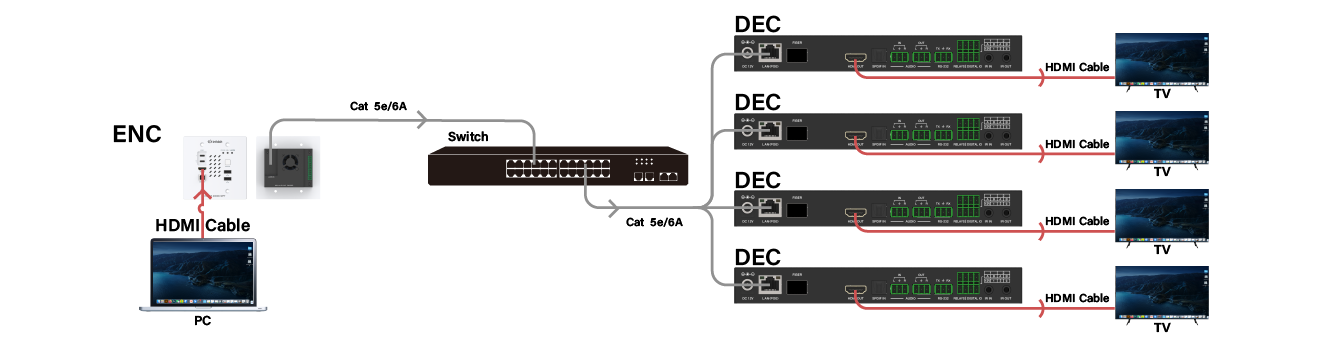 iSwitch 2000D AV over IP products are a direct replacement for AV Matrix (HDbaseT) solutions. Leverage IP infrastructure to route AV signals in offices, huddle rooms, conference rooms, or as content contribution (trunking) between locations. True plug-and-play, no need any IP settings.